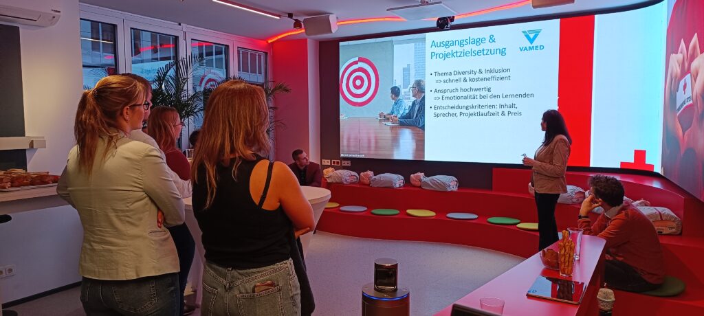 Nina von der VAMED, eine Kundin von Ronald (Competence Business Academy) hat uns näher gebracht, wie weit KI im Bereich von Videos schon ist: Ein Kurs wurde erstellt, die Videos automatisch übersetzt, die Lippenbewegungen an die Sprache angepasst (Voice Cloning). Auf der Videowand konnte man keinen Unterschied zum originalen Video erkennen.