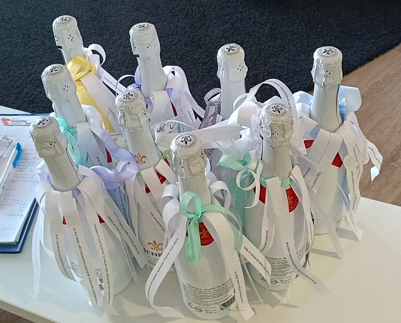 Dann gab es noch eine Überraschung für mich: Aus Anlass des 10jährigen Bestehens des Stammtisches wurden mir 10 Flaschen Sekt überreicht, mit vielen Gründen, warum der Stammtisch anklang gefunden hat. Ich war gerührt.